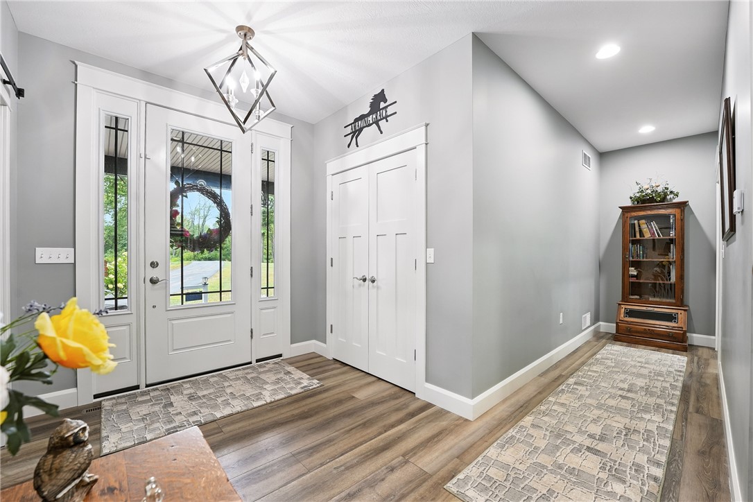 Crafted in 2021, this exquisite single-story sanctuary blends contemporary elegance with the serene expanse of 6.6 acres, offering a harmonious retreat of space and solitude. This architectural gem boasts 3 graciously appointed bedrooms, 2.5 luxurious bathrooms, and an expansive 3-car garage, seamlessly marrying sophistication with practicality. At its core, the gourmet kitchen reigns supreme, adorned with gleaming stainless steel appliances, a sprawling island, and abundant storage, flowing effortlessly into a luminous living area crowned with soaring ceilings. Beyond the walls, the vast grounds beckon, a canvas for outdoor leisure, verdant gardens, or future dreams. With its refined finishes and boundless charm, this haven embodies the pinnacle of modern country living, moments from the heartbeat of local amenities.